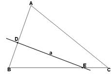 2.4. Пусть А, В, С – тройка точек не инцидентных одной прямой, а – прямая в плоскости АВС, не инцидентная ни одной из них. Тогда если а инцидентна одной из точек отрезка АВ, то она также должна быть инцидентна одной из точек отрезка АС, или одной из точек отрезка ВС. Другими словами, если она входит в треугольник АВС через одну из его сторон, то она должна выйти через другую.