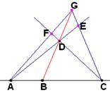 (Again, firstly take some point E outside line g. Let F be point on line CE| EÎCF. Prove, that AEÇBF in some point G between B and F. GÎBF and GÎAE. Prove, that line CFÇGD in HÎCE and HÎGD. Prove, that line EH intersects segment AD in its inner point C)