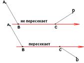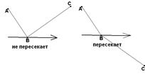 прохождение через вершину В, если при этом стороны ВА и ВС, исходящие из этой вершины окажутся по разные стороны луча, либо
