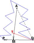 Докажите, что в этом случае существует ломаная АTQ из двух звеньев, ведущая из А в Q и не пересекающая ломаную Г.