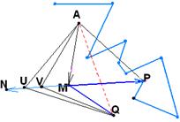 Пусть теперь нам даны ломаная Г и точка АÏГ. Проведём из точки А луч до первого пересечения с Г в точке М. Это может быть как внутренняя точка звена ломаной, так и её вершина. Наша очередная цель – доказать, что точку А можно соединить ломаной L c любой другой точкой Q того звена, на котором лежит М, включая обе его вершины так, что ГÇL=Æ. Пусть отрезки МР и MQÎГ. Они могут быть как отрезками одного звена (если М – его внутренняя точка), так и принадлежать двум соседним звеньям, если М – вершина ломаной Г. Рассмотрим отдельно два случая. Сначала разберём случай, когда луч МРÇAQ=Æ.