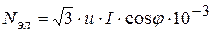 - электрическая мощность потребляемая лабораторной установкой, кВт.