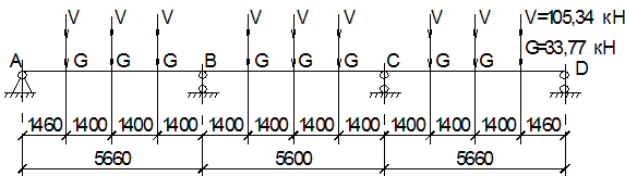 Расчетные пролеты: lпл1=1460 мм; lпл2=1400 мм; lр1=5660 мм; lр2=5600 мм; L=5600 мм.