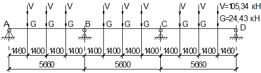 Расчетная нагрузка: q1+v=32,43 кН/м.