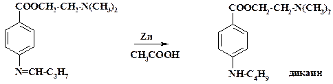 В синтезе обезболивающего препарата местного действия – дикаина азометин восстанавливают цинком в уксусной кислоте: