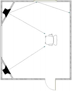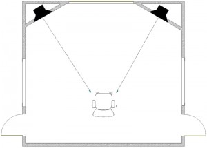 - Изначально определяются места установки основных мониторов. Ось излучения мониторов должна находиться в горизонтальной плоскости. Исключается установка мониторов в углах помещения. Установка дверей, окон и проч. планируется только после того, как определены места установки мониторов.