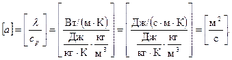 в уравнении (7) называется коэффициентом температуропроводности. Он характеризует теплоинерционные свойства тела: при прочих равных условиях быстрее нагреется или охладится то тело, которое обладает большим коэффициентом температуропроводности, и, следовательно, характеризует скорость изменения температуры в нестандартных тепловых процессах.