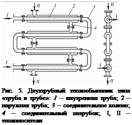 Теплообмен между теплоносителями осуществляется через стенки внутренних труб. В этих теплообменниках обеспечиваются высокая скорость теплоносителей (даже при малых расходах) и высокая интенсивность
