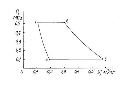 Задачей настоящей работы является расчет прямого термодинамического цикла (см. рис. 2), образованного совокупностью следующих процессов: процесс 1-2 (изобарный, Р = const); 2-3 (адиабатный, РVk = const); 3-4 (изотермический, РV = const); 4-5 (политропный, РVn = const); 5-1 (изохорный, V = const).