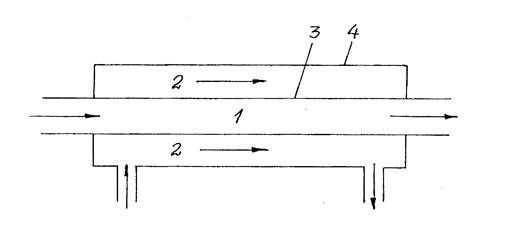 Рис.3. Схема теплообменника. 1 - поток горячего теплоносителя (воздух),