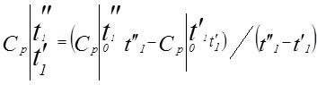 - средние теплоемкости воздуха на стандартных интервалах температур
