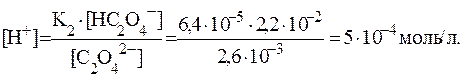 Следовательно: [С2O42-]=2,5∙10-2 - 2,6∙10-3= 2,2∙10-2 моль/л.