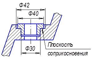 На рисунке 3.6 приведена установка седла в корпусе вентиля. Соприкосновение двух деталей происходит по плоскости и цилиндрической поверхности Ø 30, что обеспечивает центрирование оси седла. Характер сопряжения деталей зависит от условий работы изделия. Чем точнее сопряжение, тем сложнее и дороже его производство. Поэтому там, где по условиям работы не требуется большой точности в изготовлении, детали могут соединяться между собой с зазором. Номинальные размеры на эскизах соответствующих деталей должны обеспечивать этот зазор.