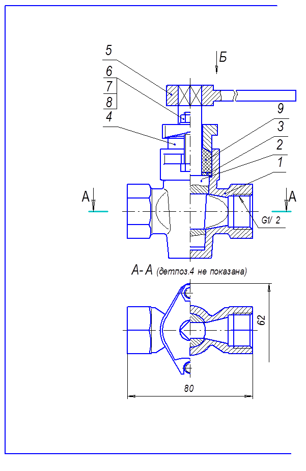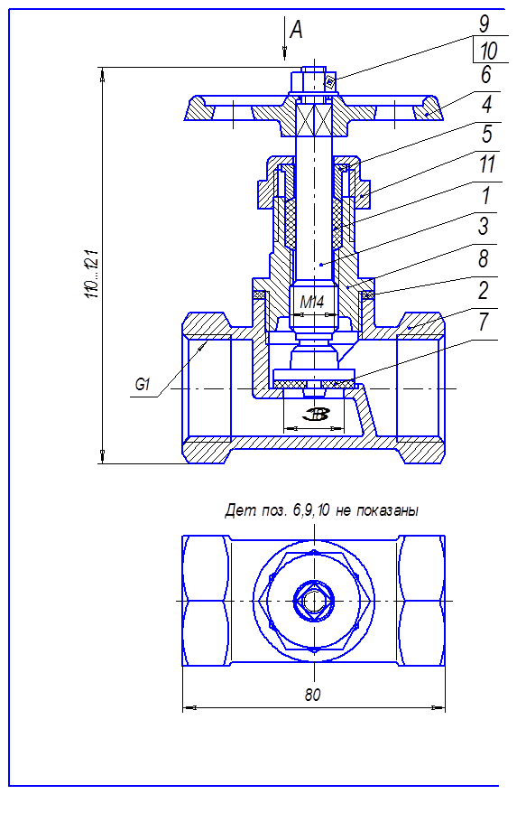 На рисунке В.11 приведён чертёж крана с шаровой пробкой. Спецификация к нему показана на рисунке В.10.