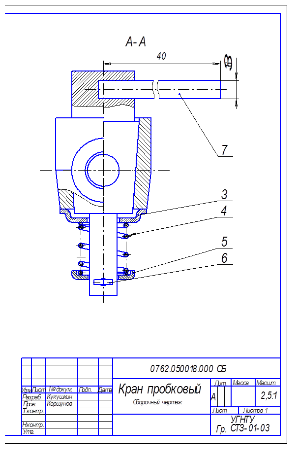 Рисунок В.7 – Кран пробковый. Сборочный чертёж
