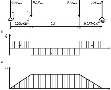 Рис. 5. Расчетная схема пальца шарнира: а – эпюра перерезывающих сил;