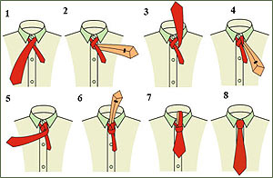 Теперь Вы знаете как завязать галстук. Немного терпения, времени и сноровки – и вы искусно завяжите любой из этих узлов, а, быть может, придумаете что-нибудь новенькое.