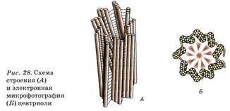 микротрубочки, поддерживающие форму клетки и играющие роль своеобразных рельсов для движения органоидов по цитоплазме. У животных и низших растений и грибов клеточный центр образован двумя