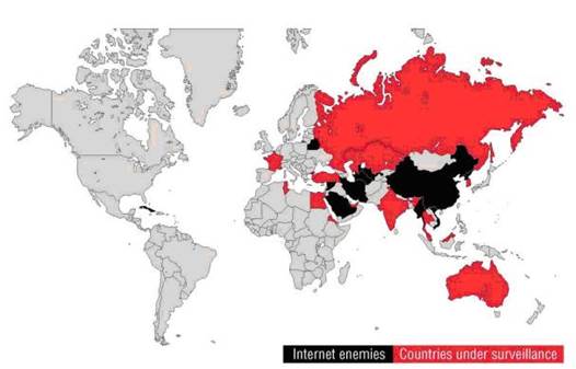 С 2009 года международная организация «Репортеры без границ» публикует ежегодные аналитические доклады, посвященные «врагам Интернета». Последний подобный отчет был опубликован в марте 2012 года. В нем организация разделила все страны на три категории: «враги Интернета», «страны под наблюдением» и свободные страны. К числу «врагов», существенным образом ограничивающих свободу интернет-пользователей, по итогам исследования были отнесены Бахрейн, Беларусь, Мьянма, Китай, Куба, Иран, Северная Корея, Саудовская Аравия, Сирия, Туркменистан, Узбекистан и Вьетнам.