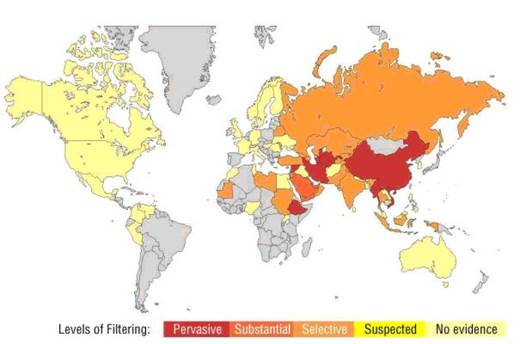 В случае России, в двух категориях из четырех (политический и «социальный» контент) она отнесена к группе стран с «выборочной» фильтрацией, в двух других категориях какой-либо фильтрации экспертами OpenNet не обнаружено. Впрочем, существенная мотивировка подобного решения отсутствует, так как последний анализ ситуации в интернет-пространстве России и стран СНГ датирован 2010 годом и не отражает ситуацию на сегодняшний день. По большинству других стран ситуация аналогична.