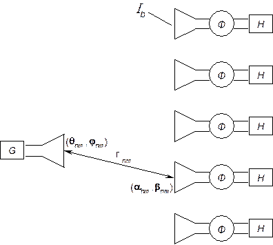 где g 0(a nm, b nm) — коэффициент усиления излучателя.