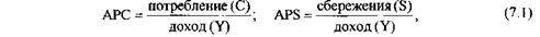 ется с помощью средней и предельной склонности к потреблению и сбе-