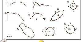 3) Разделите кривые линии на две группы: замкнутые и незамкнутые. Какие фигуры окажутся в первой группе, а какие – во второй? (Замкнтые кривые линии – 3, 6, 7, 8; незамкнутые – 1, 5, 9.)