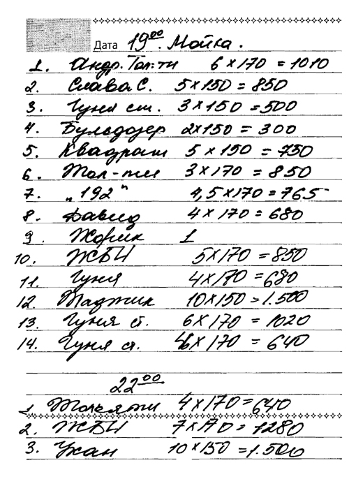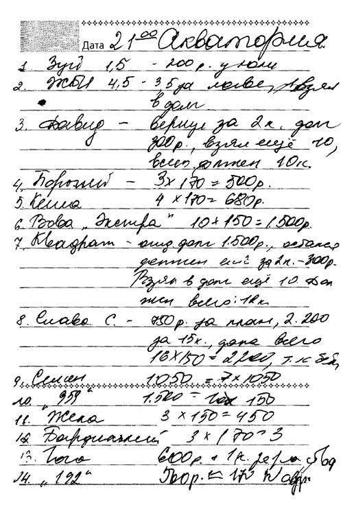 Взгляните, как шла торговля у Лошади на разных точках. В день их было 10 – 15.