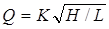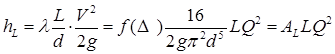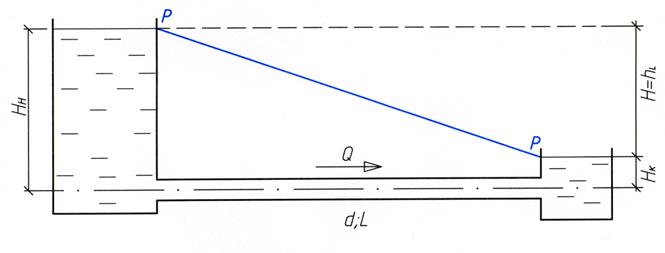 Считая, что весь имеющийся напор расходуется на преодоление сопротивлений трению (H = hL), получаем
