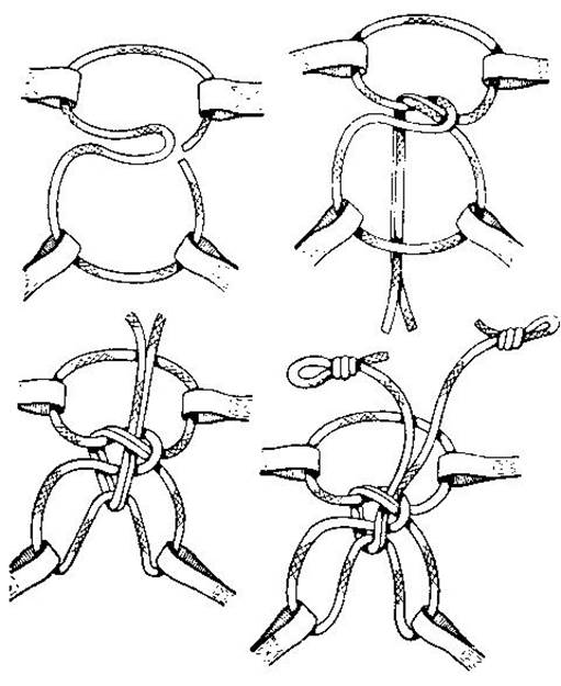 Разделенные части обвязки удобно связывать узлом "двойной булинь"
