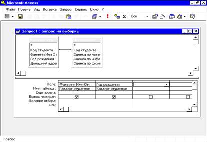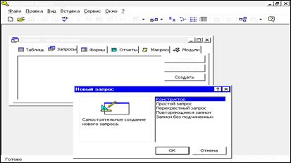В окне базы данных (рис.1) перейдите к вкладке ЗАПРОСЫ и щелкните кнопку СОЗДАТЬ.