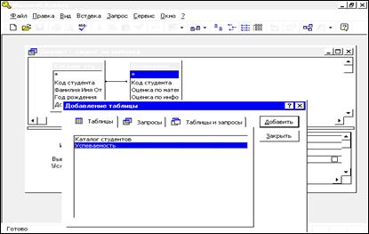 4 Для добавления объектов в запрос дважды щелкните кнопкой мыши на имени каждого добавляемого объекта, а затем щелкните кнопку ЗАКРЫТЬ.