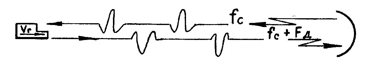 "ЭФФЕКТ ДОПЛЕРА" состоит в том, что частота сигнала, отраженного от движущегося объекта, меняет свою величину относительно частоты излучаемого сигнала пропорционально радиальной скорости движения этого объекта. Сигнал, отраженный от неподвижного объекта, отличается от излучаемого сигнала лишь постоянным сдвигом фаз.