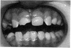 | Рис. 10.6.Отлом коронок центральных резцов без обнажения пульпы. |