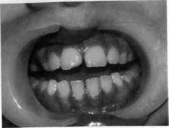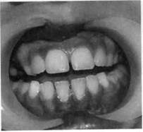 Рис. 10.7. Пациент тот же (см. рис. 10.6). Коронки центральных резцов восстановлены методикой винирования материалами Viterbond и Charisma.