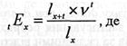 - коэффициент смертности для лица в возрасте х лет, рассчитывается: