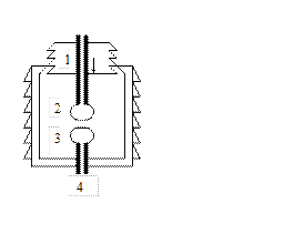Подвижный контакт (2) укреплен в сильфоне (1). Сильфон представляет собой цилиндр из гофрированной стали, позволяющий подвижному контакту совершать поступательное движение вверх и вниз. Внутренний объем сильфона сообщается с атмосферой и атмосферное давление обеспечивает контактное нажатие. Неподвижный контакт (3) герметично укреплен в нижней части вакуумной камеры.