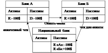 2) Инкассация чеков. Клиент вкладывает в банк Б чек, выписанный на другой банк А. Банк Б посылает чек для инкассации в национальный банк. Получив чек, национальный банк увеличивает размер резервного депозита банка Б и уменьшает – банка А. Общее количество резервов банковской системы не изменяется.