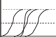 22. На рисунке представлены вольт-секундные характеристики четырех разрядников и защищаемой изоляции. Вольт-секундная характеристика разрядника, чтобы изоляция была надежно защищена: