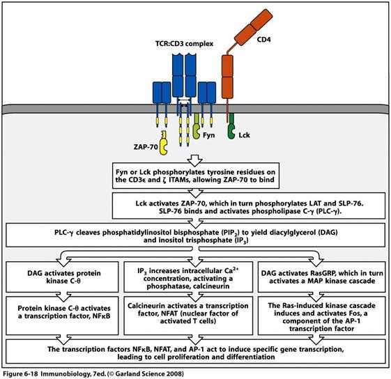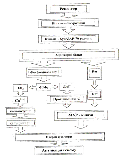 Загальна схема передачі сигналу від антиген-специфічних рецепторів Т- і В- лімфоцитів