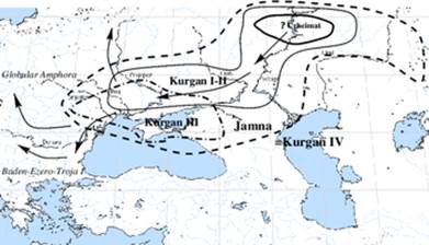 Карта исхода праязыка цивилизации. Автор научного Открытия Мария Гимбутас (Гарвардский университет)