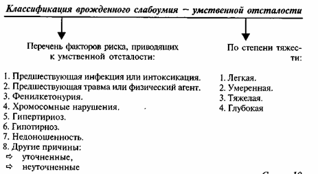 В настоящее время, кроме термина «умственная отсталость» (mental retardation), используются также и другие обозначения рассматриваемых состояний: «психическая недостаточность» (mental deficiency), «психическое недоразвитие» (субнормальность) (mental subnormality), «психический дефект» (mental defect), «психическая несостоятельность» (mental disability). Нетрудно заметить, что перечисленные понятия выделяют ту или иную особенность умственной отсталости — от указания на недоразвитие мозга до неспособности к обучению (последний термин). Понятие «умственная отсталость» следует признать не только более широким, но и более точным, так как оно практически относится ко всей категории пациентов с ранней интеллектуальной недостаточностью, а не только к тем, которым ставился диагноз олигофрении. Но до сих пор в клинической психиатрии термины «умственная отсталость» и «олигофрения» используются как синоним ы, хотя они не являются в полном смысле таковыми. Термин «олигофрения» применяется в некоторых случаях, особенно при изложении работ авторов, которые использовали его в своих исследованиях.