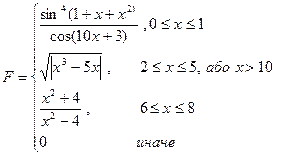 Написати функцію користувача, що обчислює значення функції F в залежності від значення аргументу X: