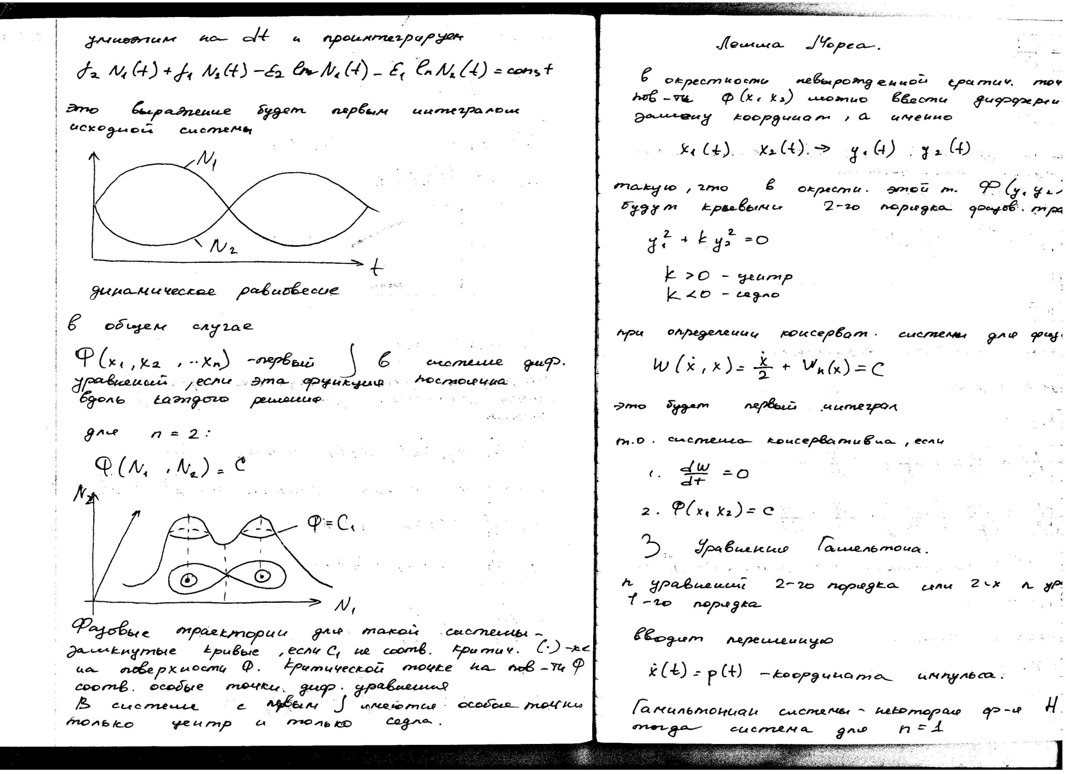 Фазовые траектории для такой системы – замкнутые кривые, если С1 не соответствует критической точке на поверхности Ф. Критической точке на поверхности Ф соответствуют особые точки диф.уравнения.
