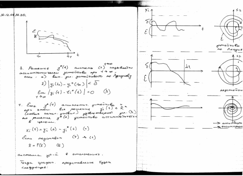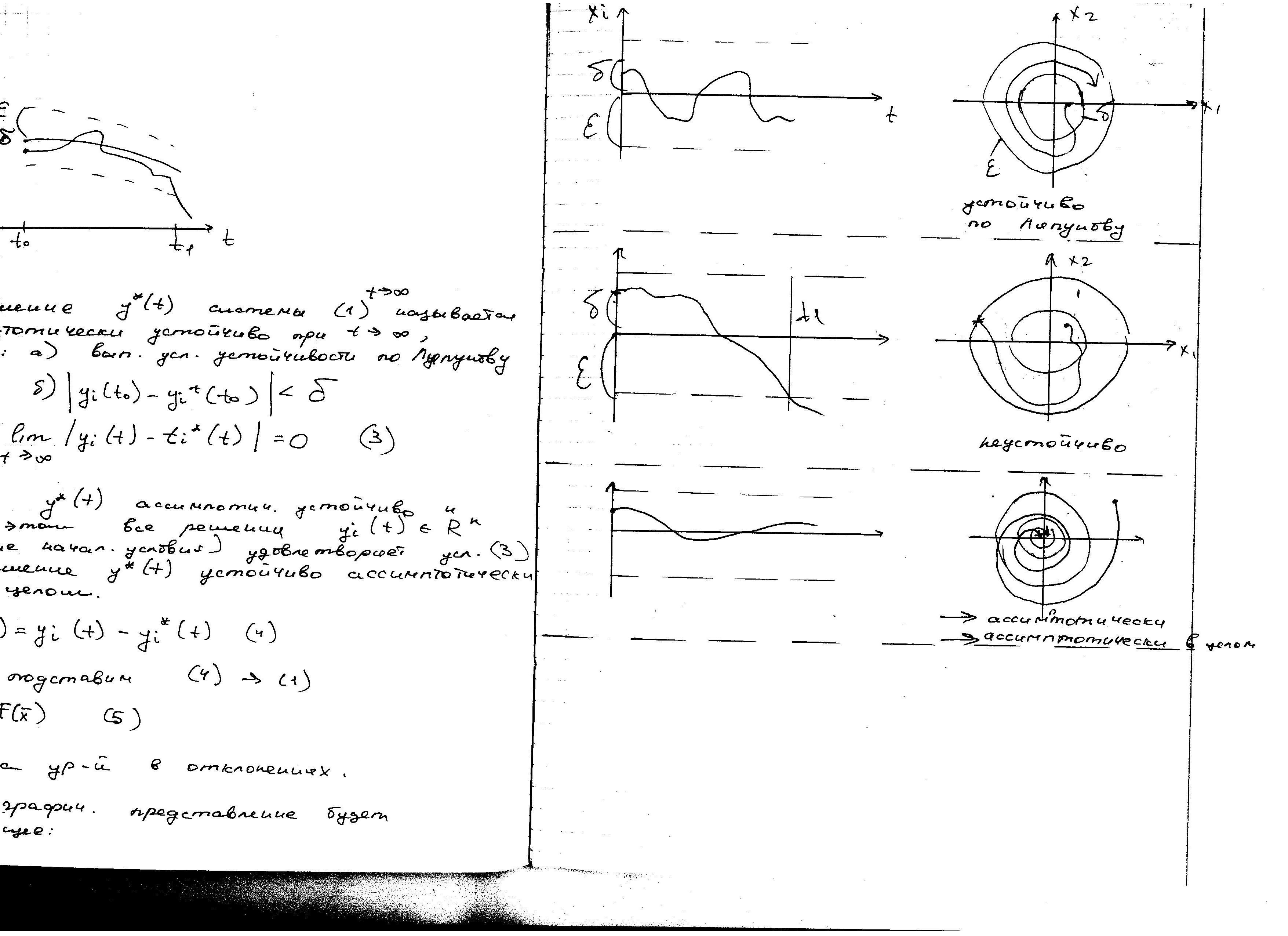 Устойчивость как свойство свободного изменения решения системы после начального отклонения в т. t0.