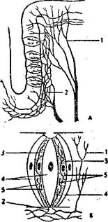 1 — свободные нервные окончания в слизистой оболочке; 2 — вкусовые нерв