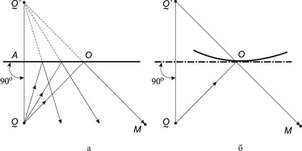а – отражение от плоскости; б – отражение от криволинейной поверхности