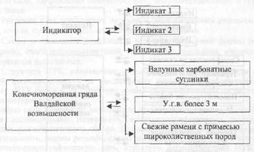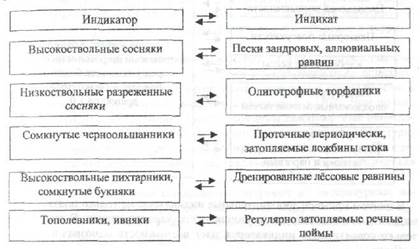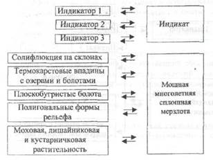 Очень часто индикаторы и индикаты образуют цепь взаимосвязанных и взаимообусловленных элементов ландшафта. В этом случае получается замкнутая прочная конструкция из генетически и логически взаимосвязанных компонентов, элементов ландшафта и экологических режимов. Дедуктивное ландшафтное мышление в эту цепь может добавлять дополнительные элементы и расширять характеристики и оценки природных территориальных комплексов.