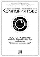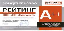В национальном рейтинге страховых компаний России, проводимом рейтинговым агентством «Эксперт РА», в 2002 году Страховой Компании «Согласие» был присвоен рейтинг А+, а в июне 2012 года повышен рейтинг надежности СК «Согласие» до уровня А++ «Исключительно высокий уровень надежности», прогноз по рейтингу «стабильный».