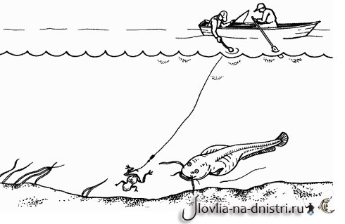 Способ ловли сома на квок уже переживает не один век. Но даже сегодня он мало чем изменился. Теперь в помощь рыбаку пришли супер крепкие удочки с безинерционными катушками. Шнуры и лески на вид токие, но могут выдерживать большой вес. Жаль только что рыбы теперь не так много как раньше.